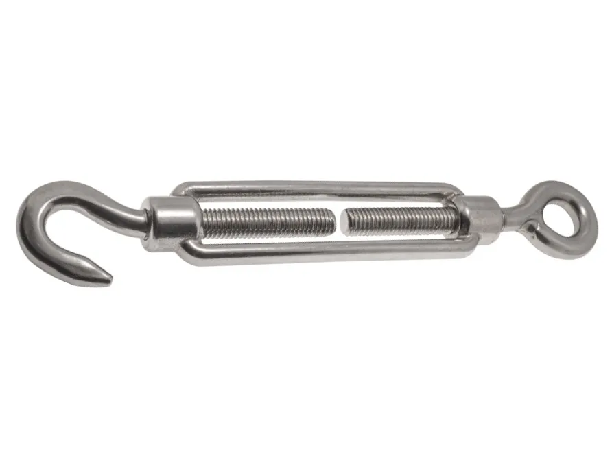 Талреп крюк-кольцо открытый DIN 1480 – такелажное приспособление для регулировки натяжения цепных, тросовых, канатных и кабельных ветвей. Его используют для устройства крюковых подвесов и растяжек, для жесткой фиксации грузов и в качестве компенсатора длины. Изготовлен из стали способом объемной штамповки, в строгом соответствии с мировым стандартом. В местах расположения резьбовых отверстий корпус имеет усиление. Оцинковка увеличивает срок службы во влажных средах и уличных условиях эксплуатации. Размер натяжителя троса определяется по диаметру резьбы.