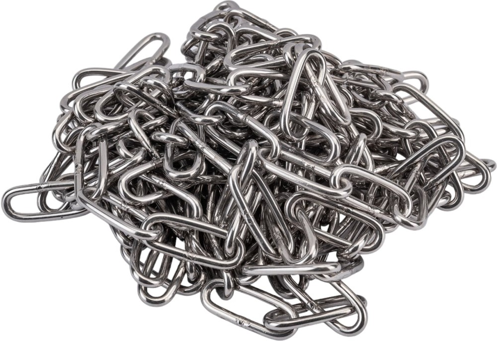 Цепь длиннозвенная DIN 763 сварная общего назначения. Длиннозвенные цепи DIN 763 используются для подвесок, растяжек и легко могут быть отрегулированы по длине за счёт большой длины звена. Цепи DIN 763 имеют малый коэффициент растяжения. Они не предназначены для подъёма грузов. Размер определяется диаметром прутка звена цепи. Размеры цепей от 2 до 12 мм.