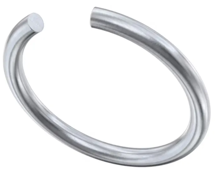 Стопорное кольцо DIN 7993 имеет вид незавершенного круга (форма А). Оно изготовлено из проволоки с диаметром сечения 0,8-3,2 мм. Основная цель его применения заключается в защите конструкции от осевого смещения. Кольцо устанавливается в канавки, а его основная часть обеспечивает фиксацию механизма на месте. Используется в сфере машиностроения, приборостроения, а также прочих производственных и промышленных отраслях.