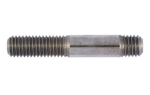 Шпилька резьбовая с ввинчиваемым концом ~ 1d DIN 938 состоит из двух резьбовых частей разной длины и гладкого сегмента между ними. Короткая часть является установочным концом, ее длина равна номинальному диаметру резьбы – это та часть, которая ввинчивается в заготовку (обычно это цельнометаллическая конструкция, в которой подготовлено резьбовое отверстие). После этого на шпильку надевается монтируемая деталь со сквозным безрезьбовым отверстием и компоненты стягиваются гайкой