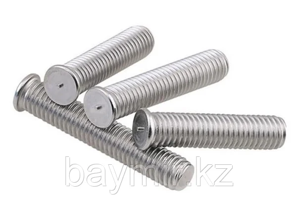 Шпилька резьбовая приварная PT ISO 13918 крепежный элемент в виде полнотелого металлического прутка с круглым сечением, имеющий основную метрическую резьбу, с небольшим фланцем на конце. Фланец предназначен для приваривания к листовому металлу или массивным заготовкам для получения постоянной резьбовой стойки. Поверхность с медным покрытием обеспечивает лучший контакт с заготовкой и повышает электропроводность. Соединение имеет повышенные характеристики на отрыв, сдвиг и поворот. Для монтажа не требуются дополнительные подготовительные операции (сверление, зенковка и т.п.)